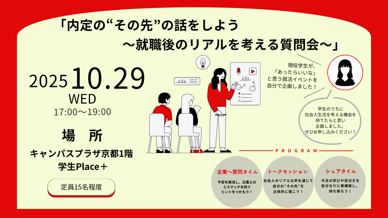 京都企業×学生の交流イベント「内定の“その先”の話をしよう~就職後のリアルを考える質問会~」参加学生募集!
